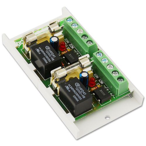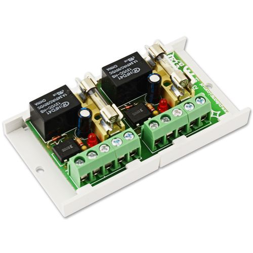 Relé 2x 2A/30V DC (max.) C/NC/NO, 2x pojistka F 2A, optická signalizace 2x LED