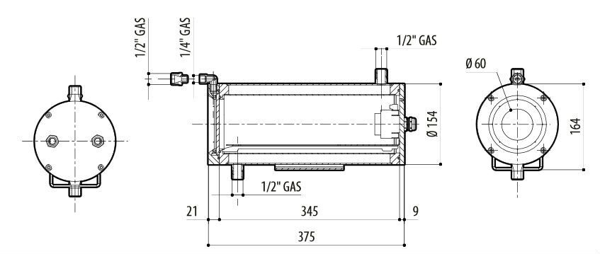 Nerezový vodou chlazený kryt pro teploty do 400°C. Dodávané včetně křemenného skla a příruby pro jeho vzduchové chlazení. Vnější rozměry Ø 154mm, délka 350mm, vnitřní rozměr 78x78 a délka bez zdroje 345mm a se zdrojem 280mm. Tlak chladící vody min. 0,3 ~ 2,5Bar, filtrace 0,1 mikronů.