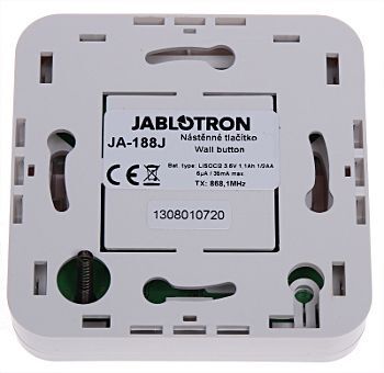 Bezdrátové nástěnné tlačítko. Tlačítko JA-188J je určeno pro bezdrátovou aktivaci panik nebo tísňového poplachu. Rovněž se používá jako dálkový ovladač pro zajištění / odjištění zabezpečovacího systému.