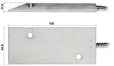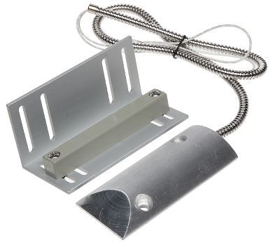 Vratový magnetický kontakt, masivné kovové provedení pro velká vrata, drátové vývody v pancéřovém krku, 2-vodičové provedení, rozměry 51x20x10mm