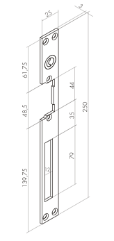 Dlouhá lišta určena pro montáž s asymetrickými elektromechanickými zámky. Lišta je oboustranná a má otvor pro dveřní vložku.