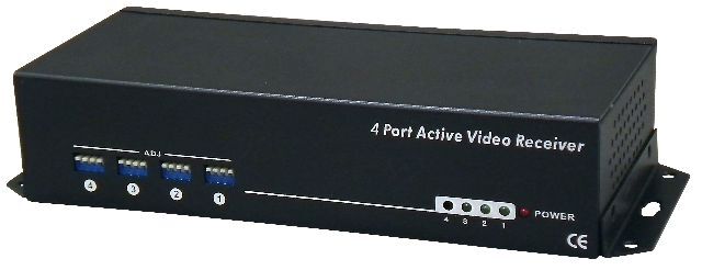 4 kanálový aktivní přijímač převodníku z TWIST pár na BNC video, určený pro přenos až na vzdálenost 1200m při použití aktivního vysílače VAB100T. Rozměry 19...