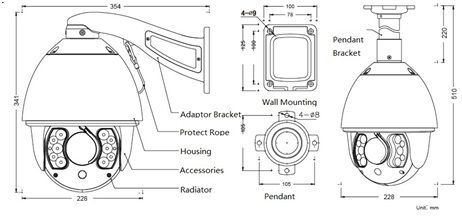 | Pan/Tilt Range | Horizontal: 0°~350° nekonečný, Vertical: -10°~90° Auto Flip |