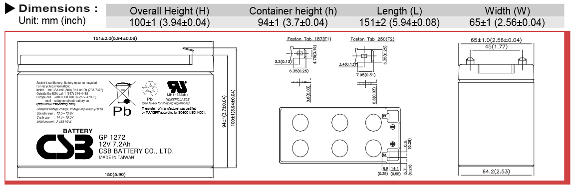 Bezúdržbový VRLA hermetický uzavřený akumulátor 12V 7.2Ah, optimální životnost 5 let.