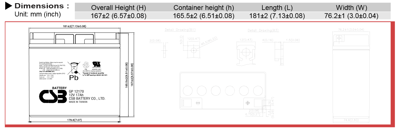 Řada akumulátorů GP je určena pro nejširší rozsah aplikací. Akumulátor je malý, lehký a může být užíván pro více jak 260 cyklů vybití nebo až 5 let v režimu „Standby". Tak jako ostatní baterie od CSB, jsou i tyto akumulátory bezúdržbové, uzavřené a pracující v jakékoli poloze