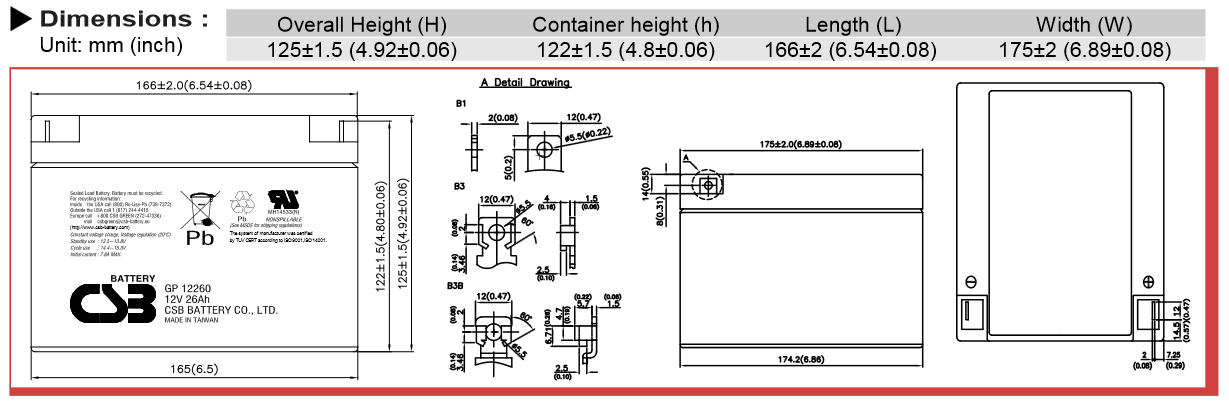 Řada akumulátorů GP je určena pro nejširší rozsah aplikací. Akumulátor je malý, lehký a může být užíván pro více jak 260 cyklů vybití nebo až 5 let v režimu „Standby". Tak jako ostatní baterie od CSB, jsou i tyto akumulátory bezúdržbové, uzavřené a pracující v jakékoli poloze