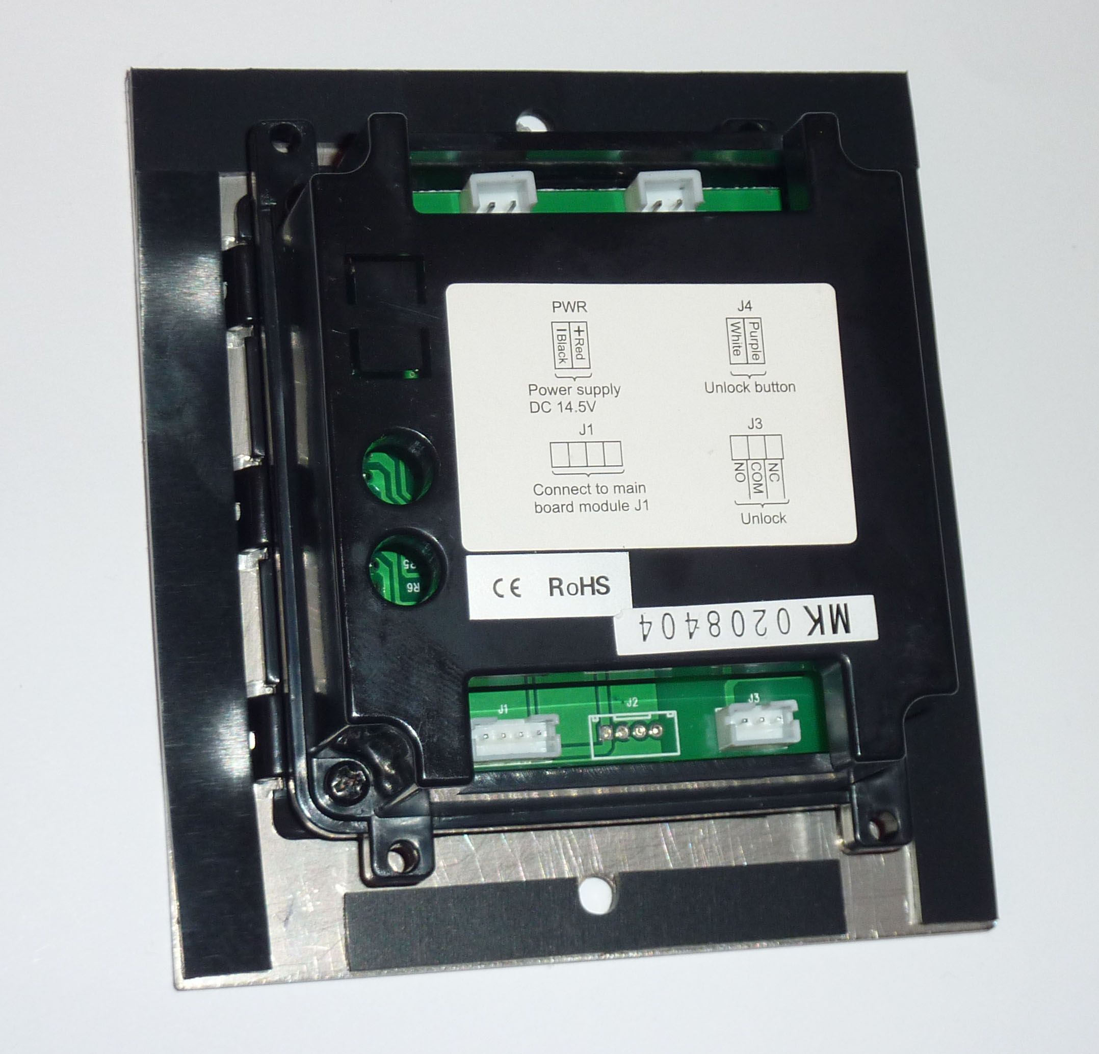 Paměť na 900 vzorků otisků prstů. Optická i akustická signalizace, výstup relé NO/NC 1A/30VDC napájení 12–15VDC, odběr max 120mA, rozměry 110x100x38.5mm. Provozní podmínky -20°C až 50°C.