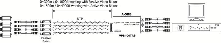 Pasivní převodník videosignálu pro přenos po TWIST páru, podpora nestíněného UTP vedení. S kabelem CAT5e přenos barevného obrazu až na 300m. Převodník zajišťuje jednoduché zapojení, spolehlivost s pasivním provozem bez napájení až 4 videokanálů.