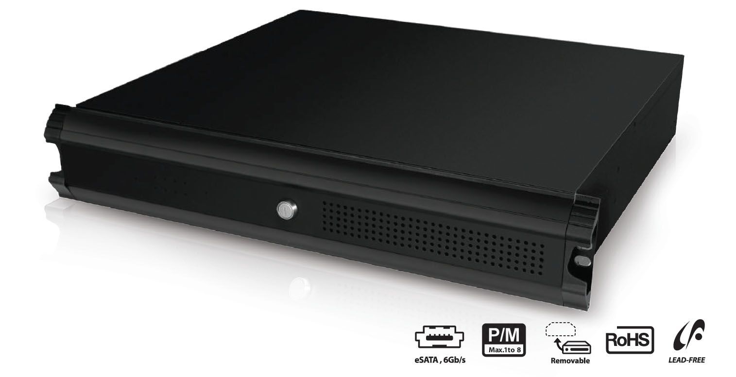 Diskové pole pro HD-CCTV, 8x SATA III 6Gb/s, vyjímatelné, RAID 0, eSATA, do 2U 19” skříně, rozměry 482x89x436mm, váha 7.4kg bez HDD.Určeno převážně pro zařízení TVLogic a 3RGlobal