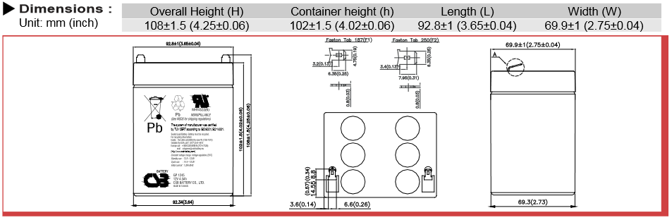 Řada akumulátorů GP je určena pro nejširší rozsah aplikací. Akumulátor GP1245 je malý, lehký a může být užíván pro více jak 260 cyklů vybití nebo až 5 let v režimu "Standby". Tak jako ostatní baterie od CSB, jsou i tyto akumulátory bezúdržbové, uzavřené a pracující v jakékoli poloze.