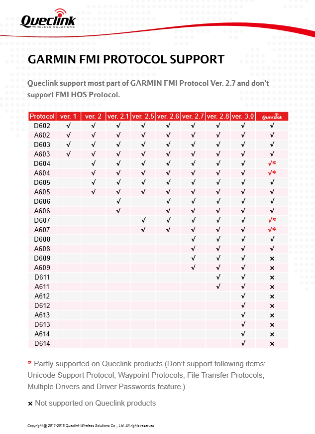 Sada obsahuje plnou podporu pro protokol Garmin FMI verze 2.7 a všechny předchozí verze. Lze připojit k GSP jednotce řady GV2xx a GV3xx.