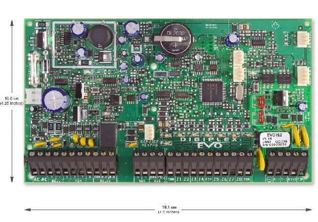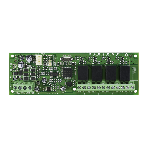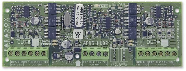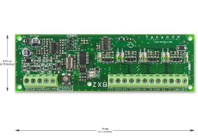 Ústředna zabezpečovacího a přístupového systému PARADOX, 8 (16ATZ) zón na PCB rozšiřitelné až na 192 zón, 8 nezávislých podsystémů, 999 uživatelů, možno připojit až 254 externích, sběrnicových, pomocných, modulů, 4 PGM + 1 relé(5A) na PCB.
