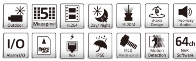 | Popis | 5 megapixelová venkovní kamera s funkci DEN/NOC |