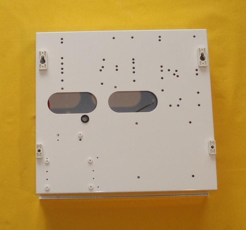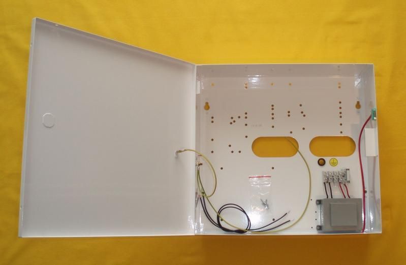 Kryt ústředny 320 x 300 x 90 mm s instalovaným transformátorem 16VAC/45VA, ochranný kontakt TAMPER, provedené pospojování, prostor pro 17Ah akumulátor, 8mm distanční mezera od zdi. Předvrtané otvory pro ústředny Esprit, Spectra, Digiplex atd.