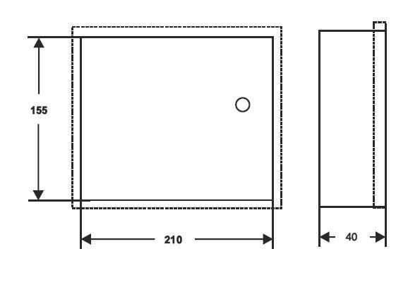 Kryt ústředny 250 x 290 x 80 mm, bez zdroje, ochranný kontakt "TAMPER, provedené pospojování, prostor pro 7Ah akumulátor, 8mm distanční mezera od zdi. ...