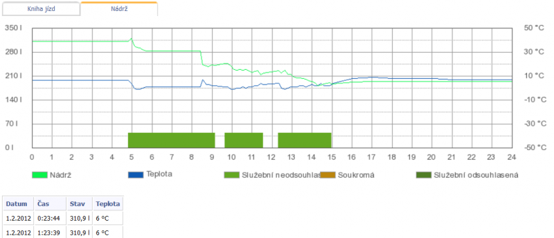 Zobrazení grafu stavu nádrže v systému AutoGPS