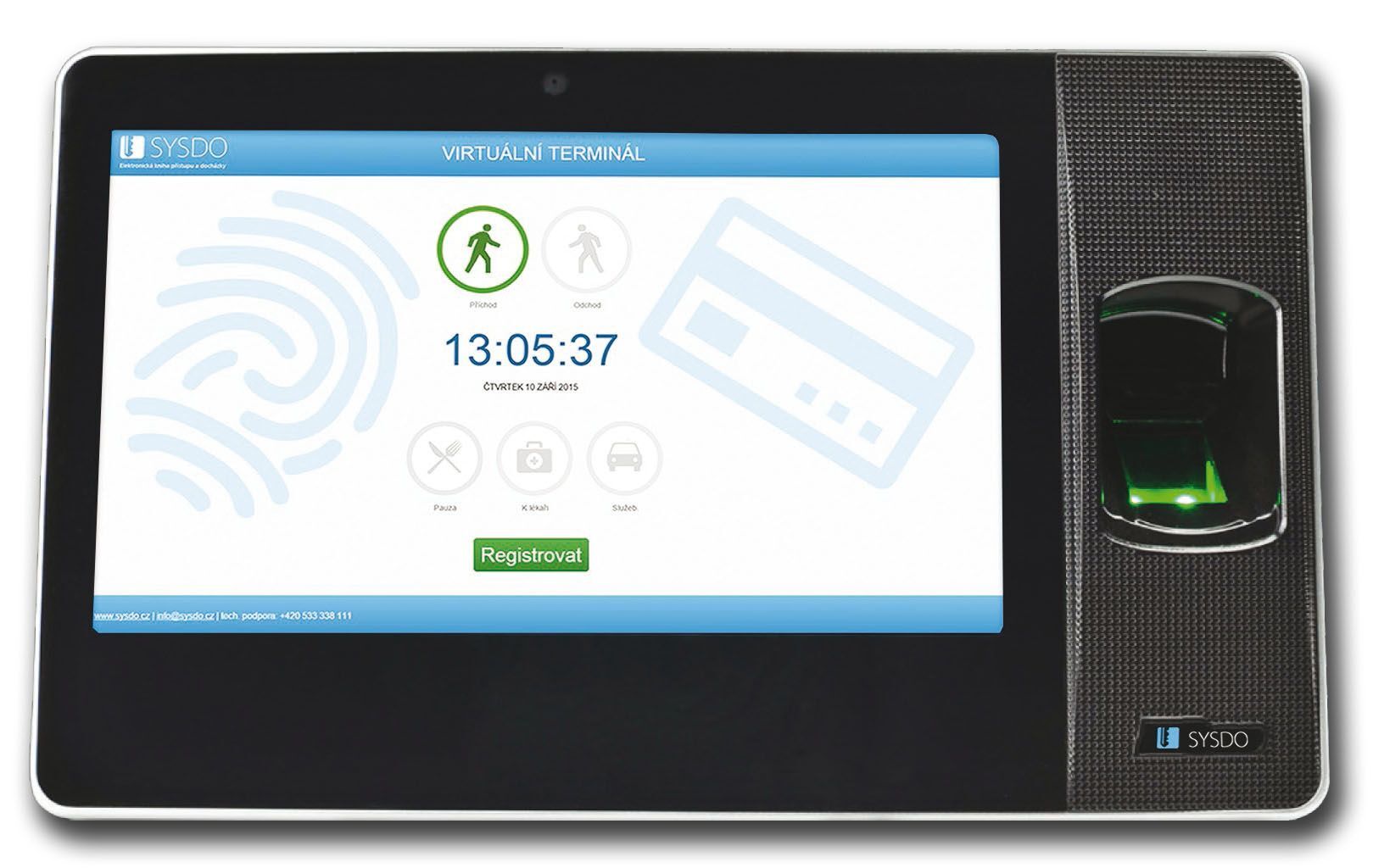 Docházkový a přístupový terminál ve spojení s portálem SYSDO (ucelený systém docházky) představuje kompletní správu nad docházkou a přístupem osob kdekoliv na světě bez nutnosti instalace SW a složité konfigurace.