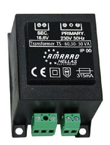 TRN16/30 TS6030 transformátor 16V, 30VA, pojistka a svorkovnice