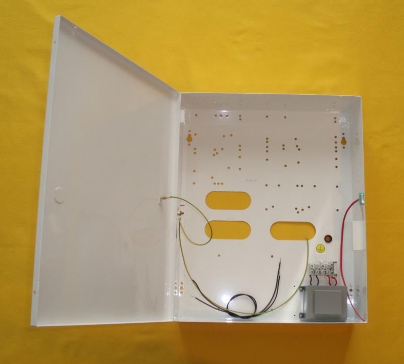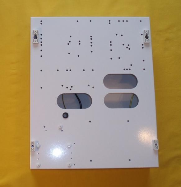 Kryt ústředny 320 x 395 x 90 mm s instalovaným transformátorem 18/45 VA, ochranný kontakt TAMPER, provedené pospojování, prostor pro 17Ah akumulátor, 8mm distanční mezera od zdi. Předvrtané otvory pro ústředny Esprit, Spectra, Digiplex