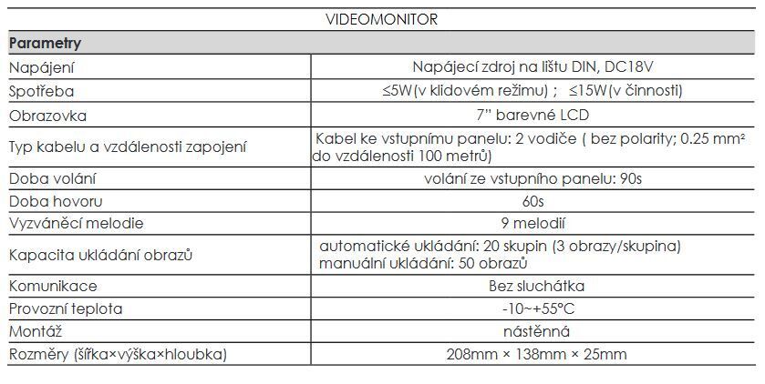 Identifikace příchozí návštěvy je umožněna pomocí barevné kamery s nočním přisvícením a možností hlasového komunikačního spojení s návštěvou. Funkce sepnutí umožní na videomonitoru aktivovat kameru a sledovat dění před vstupem do domu i bez provedeného volání a mít tak nad vstupním prostorem do domu plnou kontrolu.