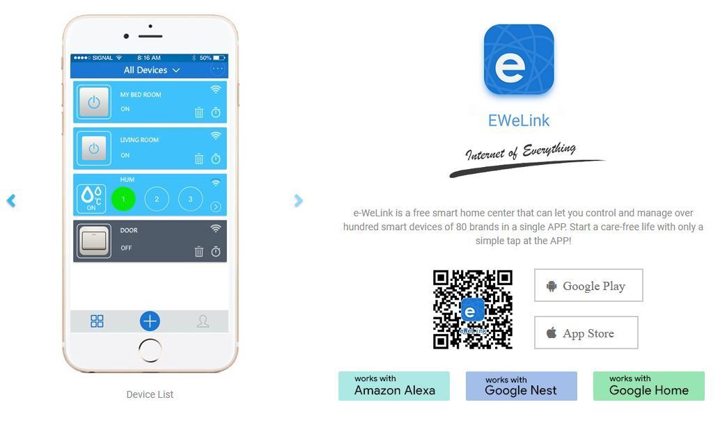 WiFi nízkonapěťový spínač, ovládaný pomocí mobilní aplikace eWeLink (pro iOS a Android), napájení 5VDC, výstup NO/NC relé a magneticky kontakt pro monitorin...