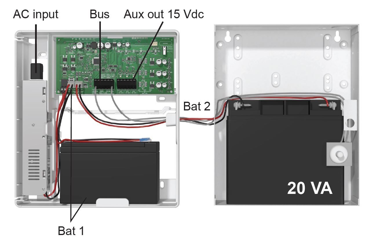 Zálohovaný systémový zdroj napájení PARADOX o výkonu 75W při +13,8VDC. Propojení se systémovou sběrnici BUS PARADOX pro kompletní monitorování stavu zdroje.